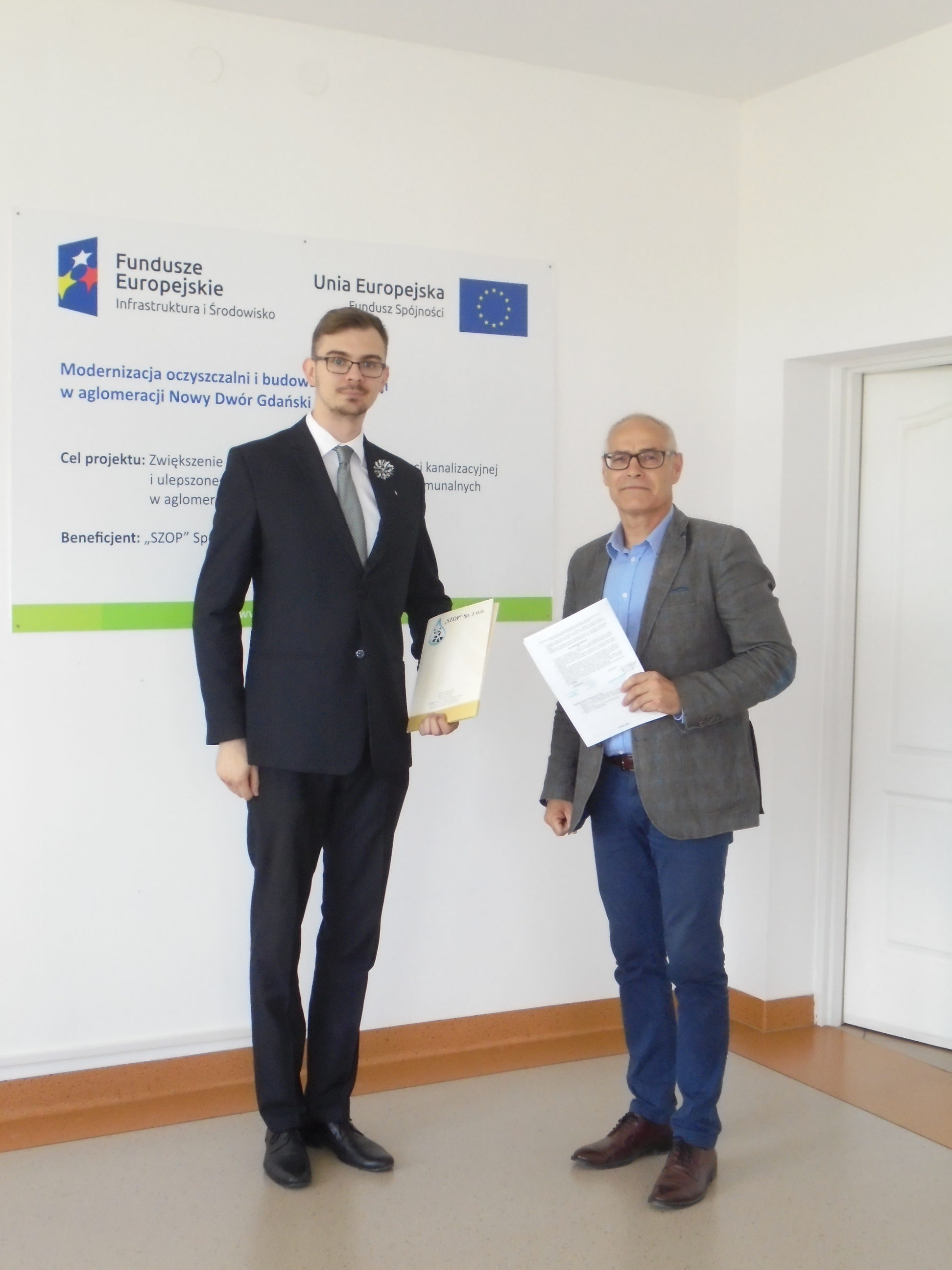 Uroczyste podpisanie dokumentów umowy odbyło się w siedzibie Narodowego Funduszu Ochrony Środowiska i Gospodarki Wodnej w Warszawie w obecności Dyrektor Departamentu Ochrony Wód Pani Ewy Kamieńskiej, Burmistrza Nowego Dworu Gdańskiego Pana Jacka Michalskiego oraz Prezesa Spółki z o.o. „SZOP” Stanisława Dąbskiego.